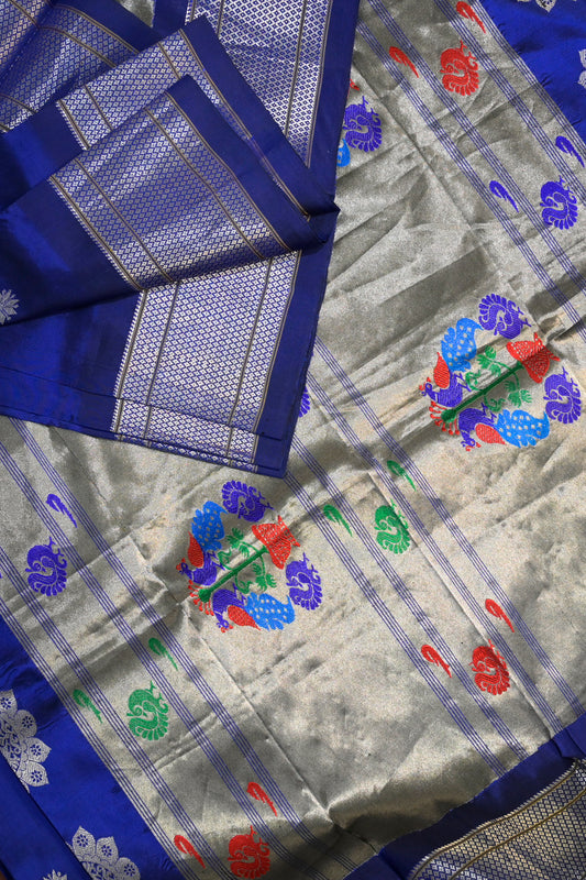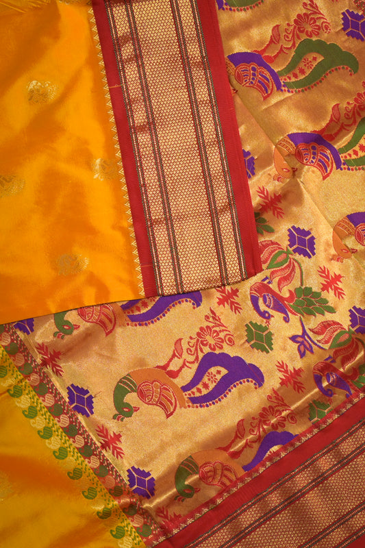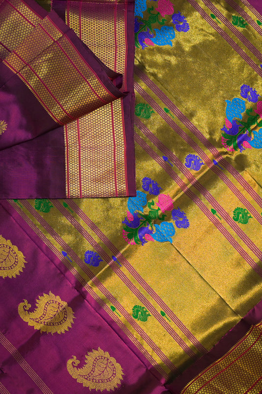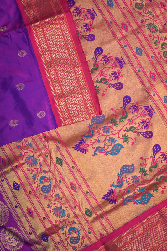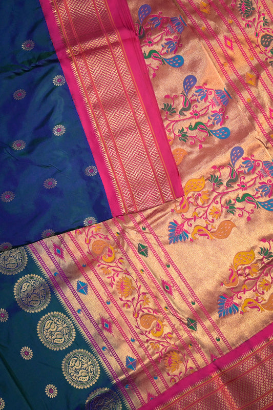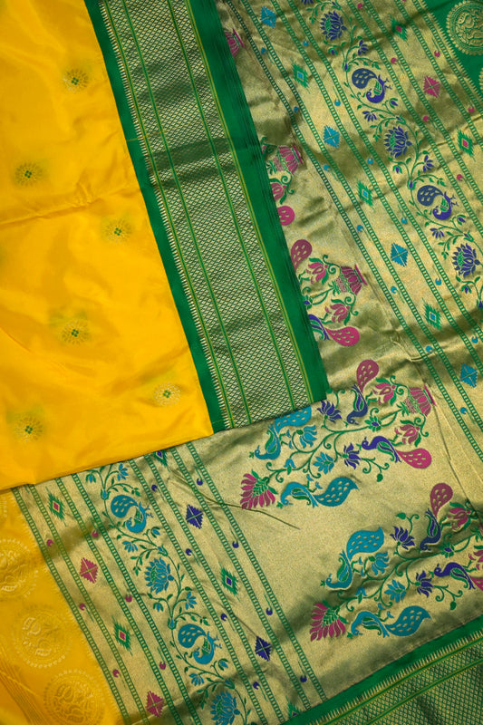 9yard Handwoven Pure Paithani With Peacock Jari Buttis