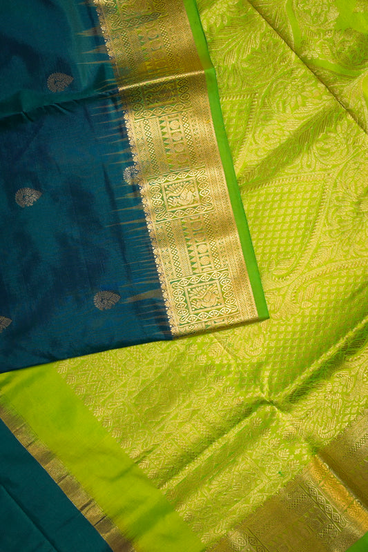 9yard Handwoven Kanjivaram Silk With Parrot Green Contrast