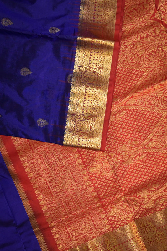 9yard Handwoven Kanjivaram Silk With Red Contrast