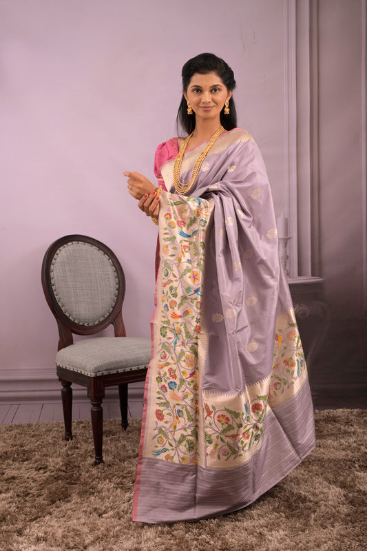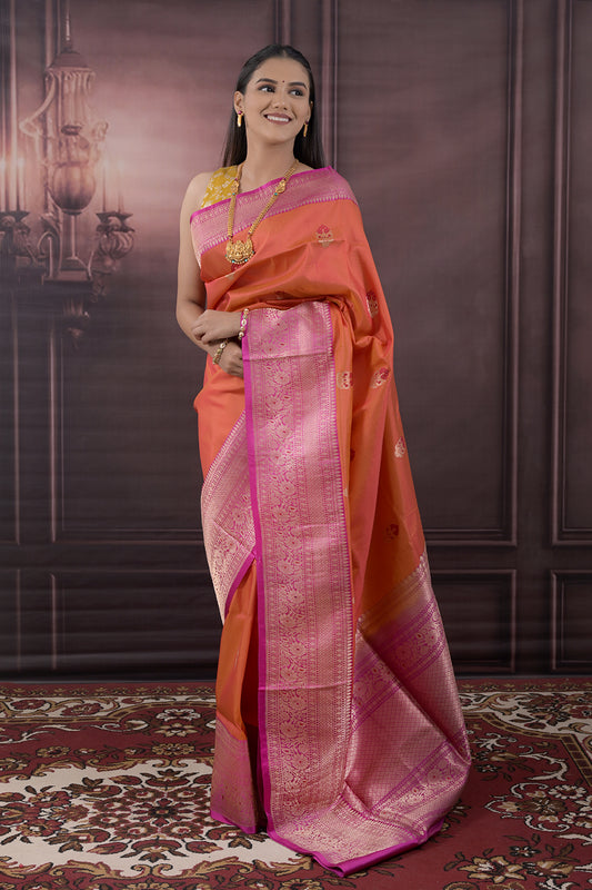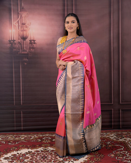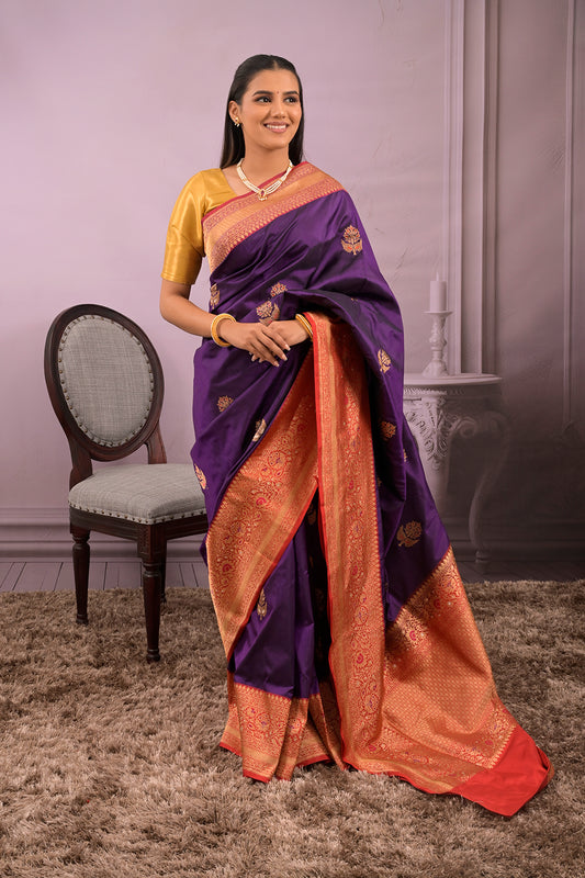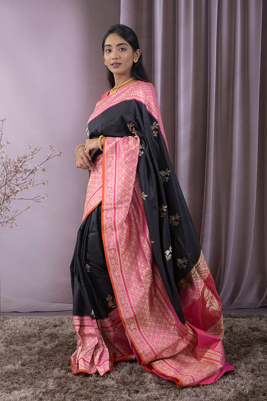 Banarasi Woven Jari Motifs With Single Muniya Border