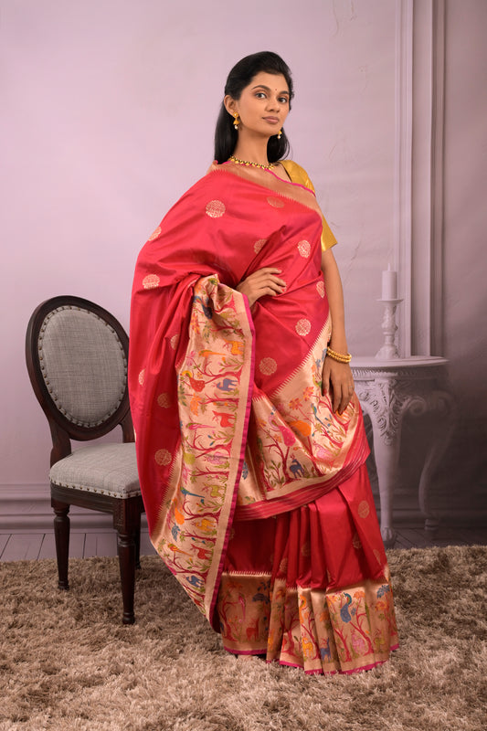 Banarasi Woven Gold Jari with Peacock Parrot Border