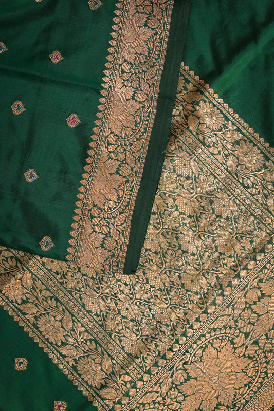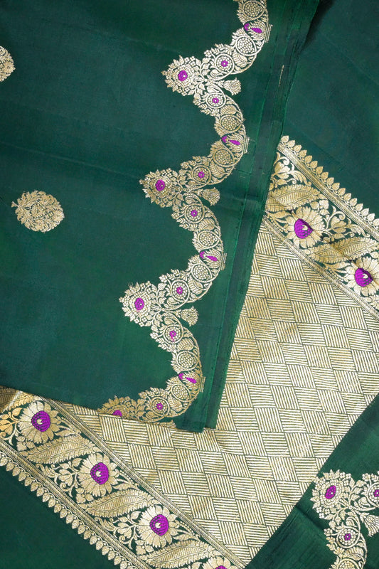 5. Jangla Banarasi Sarees: Characterized by heavy floral motifs woven throughout the body, representing the richness of Mughal artistry.