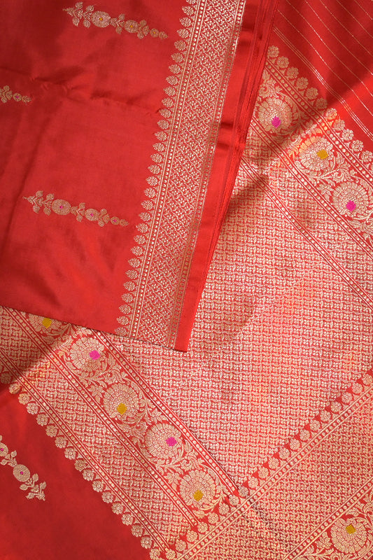 1. Katan Banarasi Sarees: Made from pure silk threads, these sarees have a luxurious, smooth texture with rich zari motifs. Perfect for weddings and traditional ceremonies.