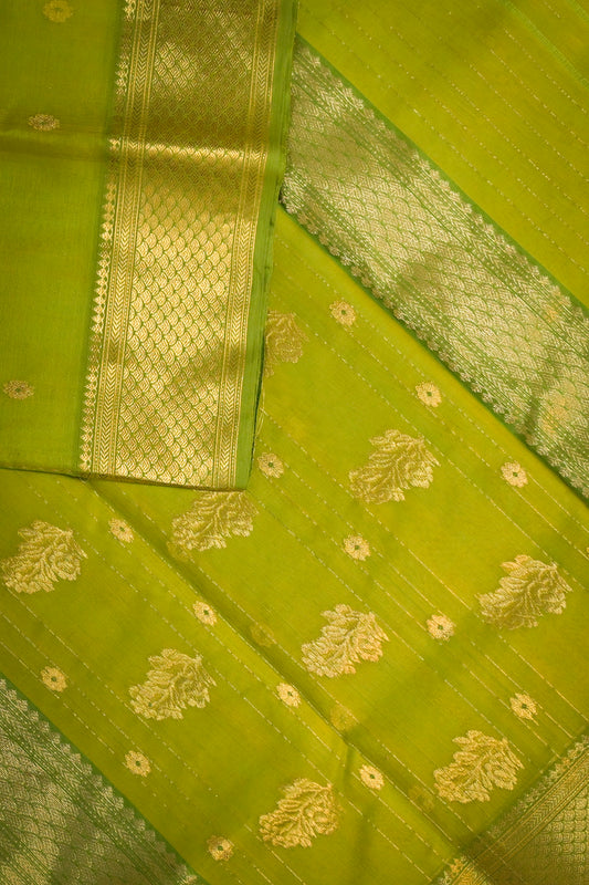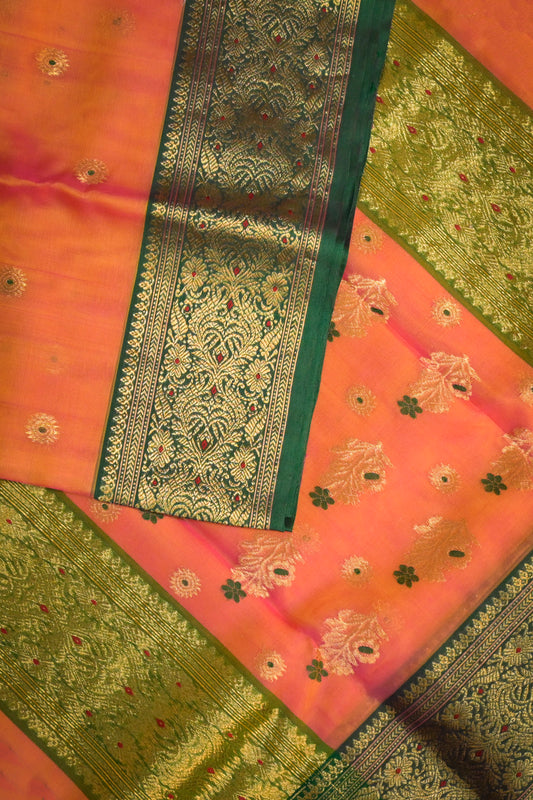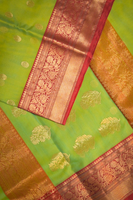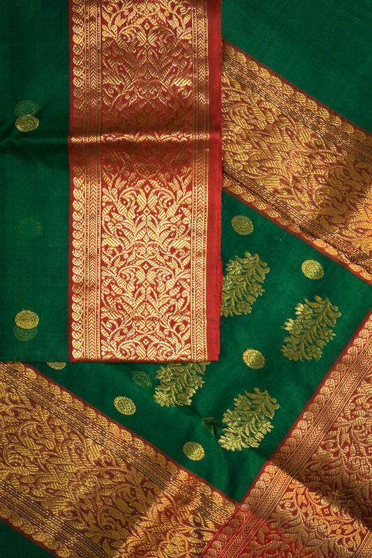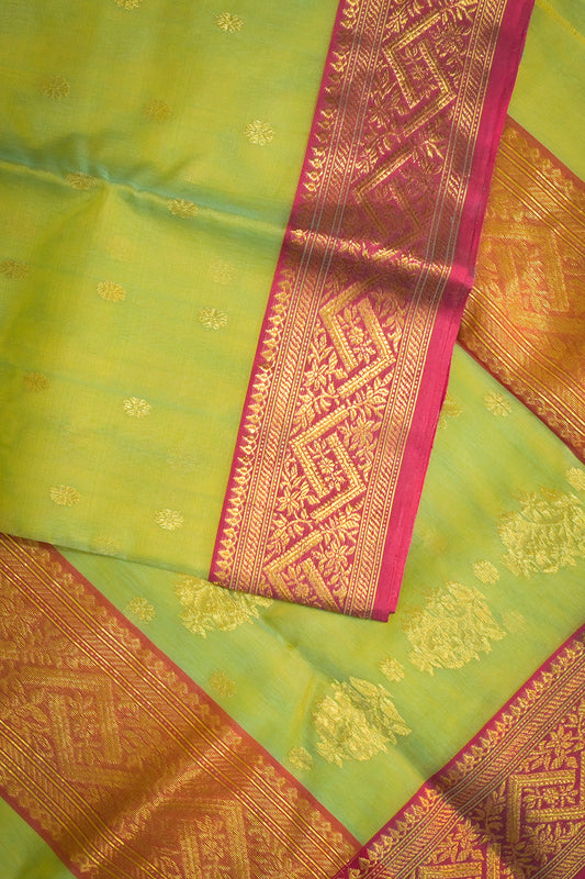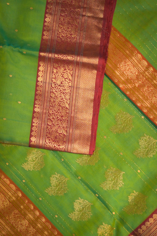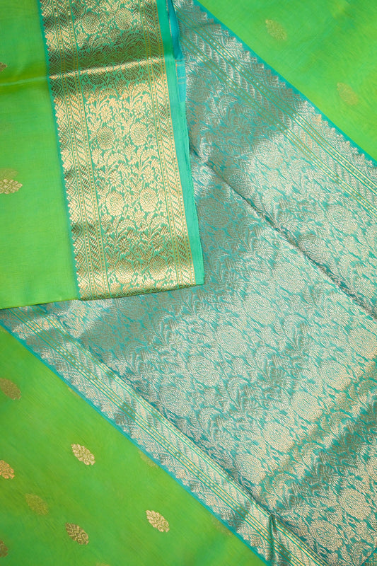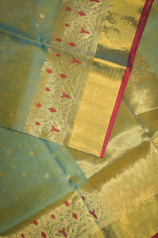 Chanderi Woven Meena And Jari Motifs With Green Contrast