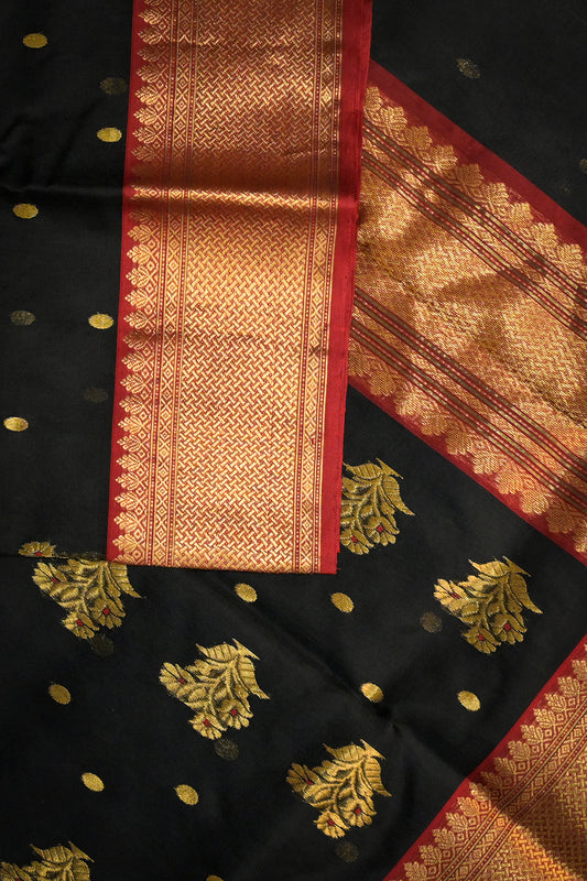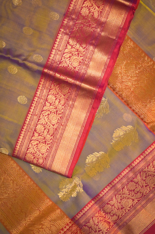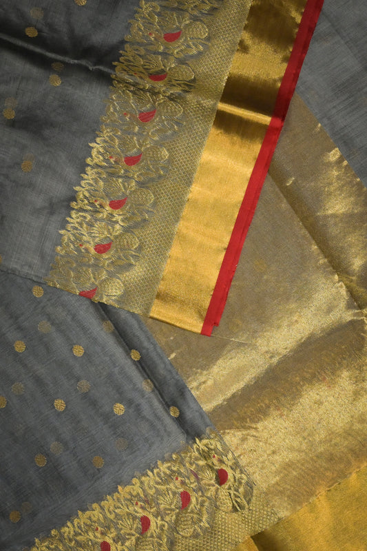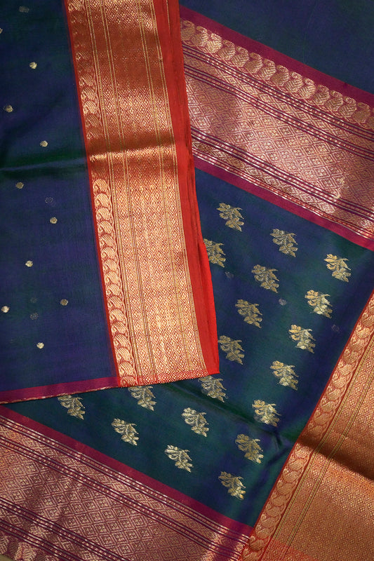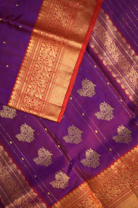 Chanderi Woven Jari Motifs With Triple Mango Border