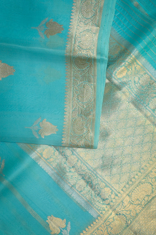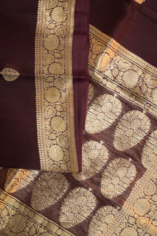 Organza Woven Antique Jari Motifs With Pink Contrast