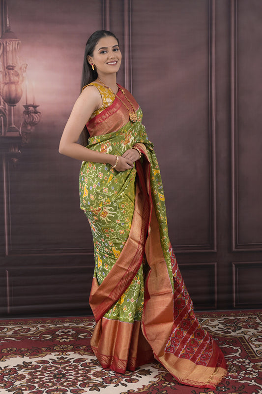 Ikkat Patola Tie And Dye Weave With Plain Body