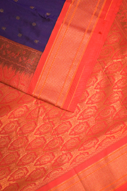 Sold outSemi Silk Woven Contrast Paithani