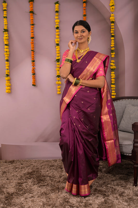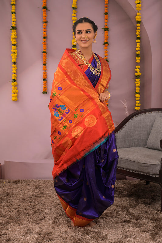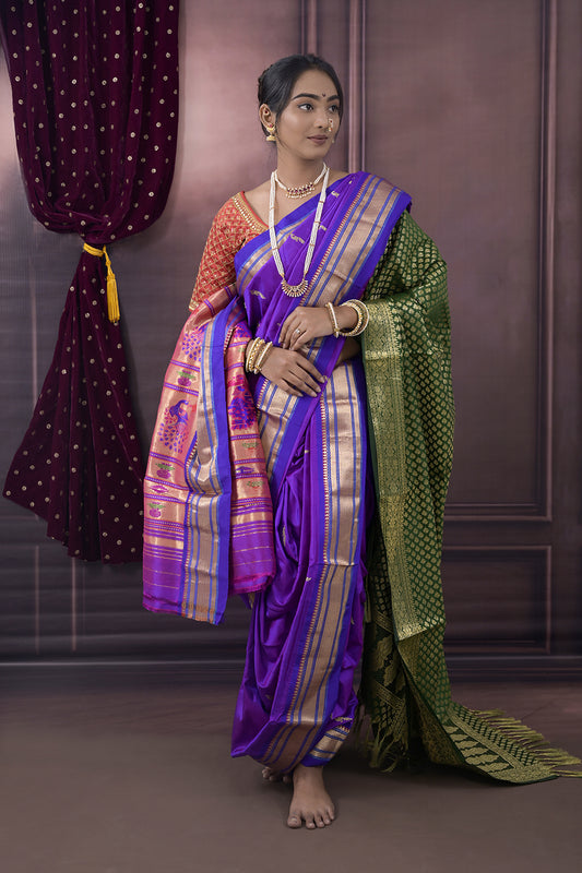 9yard Woven Betel Leafs Motifs With Silver Jari Border