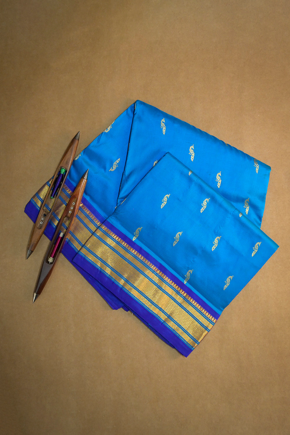 9yard Handwoven Pure Paithani With Peacock Jari Buttis