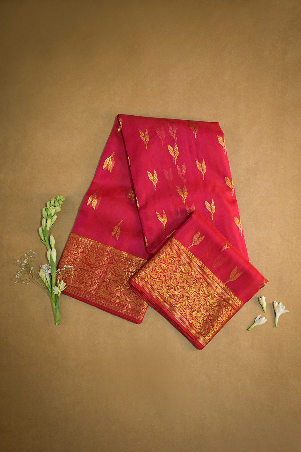 Chanderi Woven Leaf Jari Motifs With Self Matching